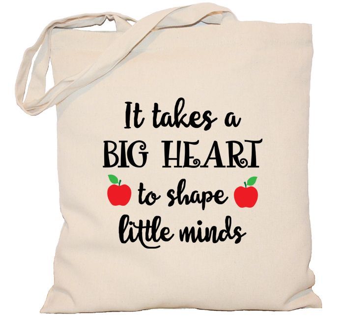 Torba It takes big Heart to shape little mind w wersji angielskiej dla każdego nauczyciela. Potrzeba wielkiego serca, aby kształtować młode umysły.