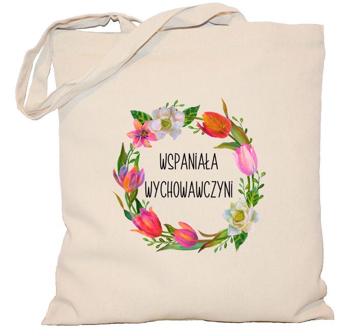 Torba Wspaniała Wychowawczyni z pięknymi kolorowami kwiatami.