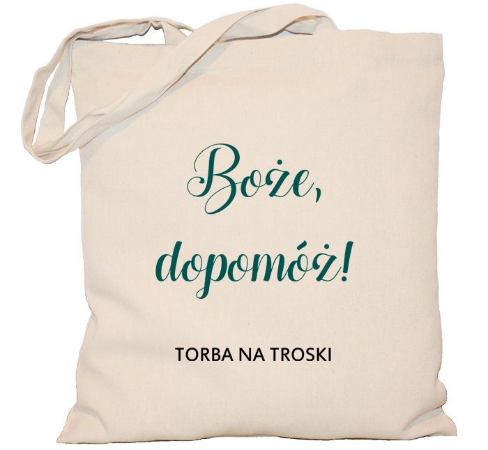 Torba Boże dopomóż, czyli torba na troski jest przygotowana z myślą o nauczycielskim trudzie. Jest to torba dla każdego. Wszakże każdemu człowiekowi kończy się cierpliwość i potrzebuje boskiej pomocy.