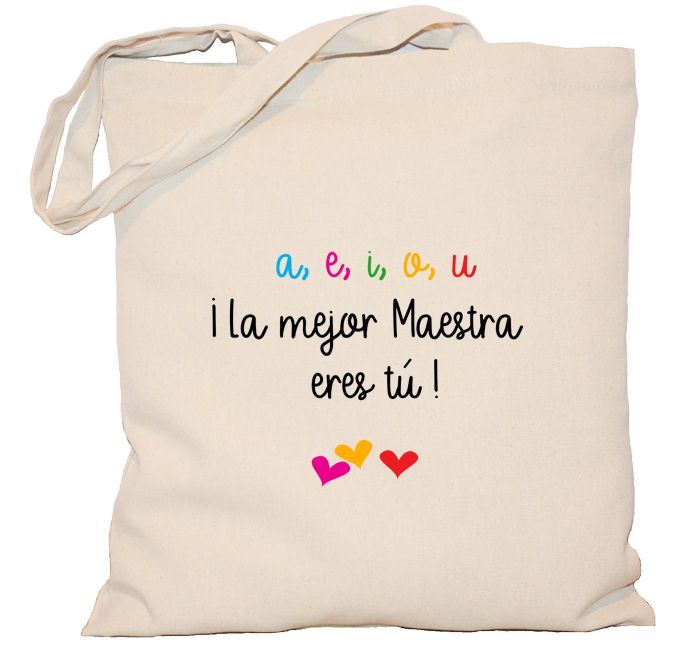 Torba La mejor maestra eres tu ma zastosowany prosty zabieg słowny i jest wyliczanką samogłosek, która ładnie rymuje się z pozostałą częścią.
