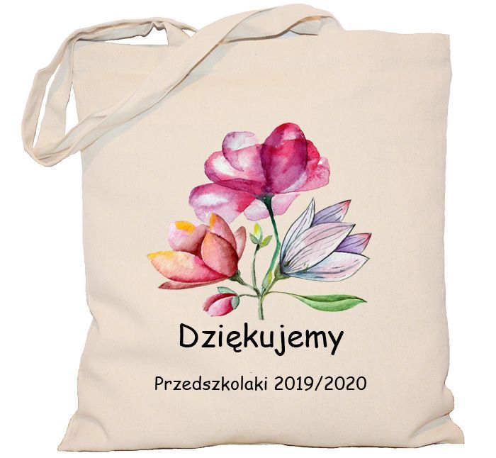 Torba Dziękujemy z bukietem kwiatów i podpisem grupy przedszkolnej.