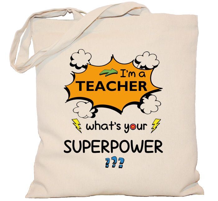 Bardzo popularny napis jestem nauczycielem a jaka jest Twoja super moc na torbie dla Pana, Pani od języka angielskiego. Torba I'm a teacher what's your superpower w wersji angielskiej jest oczywiście zrozumiały dla anglisty czy anglisty, bo to są osoby, które kochają brytyjski język. Tak się składa, że nauczyciele to są pasjonaci nauki lub wybitni językowcy. Wiedza to jest super moc!