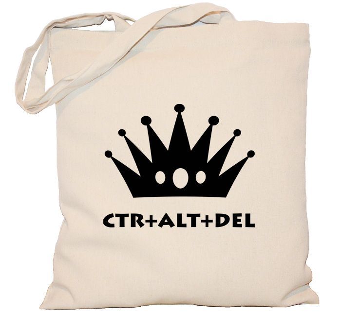Ekologiczna torba z nadrukiem na dzień nauczyciela informatyki ze skrótem klawiszowym ctr alt del. Doskonała na prezent.