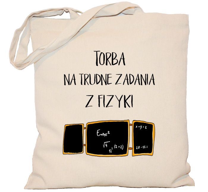 Torba na trudne zadania z fizyki dla nauczycielki lub ucznia. Fizyka jest fascynująca, ale zagadkowa i trudna. To są niby tylko prawa, które nas otaczają, ale jednak ująć porządek wszechrzeczy, nazwać go i uporządkować jest niezwykle trudno. Czasami odkryte prawa wydają się oczywiste, a przecież niełatwo na nie wpaść.