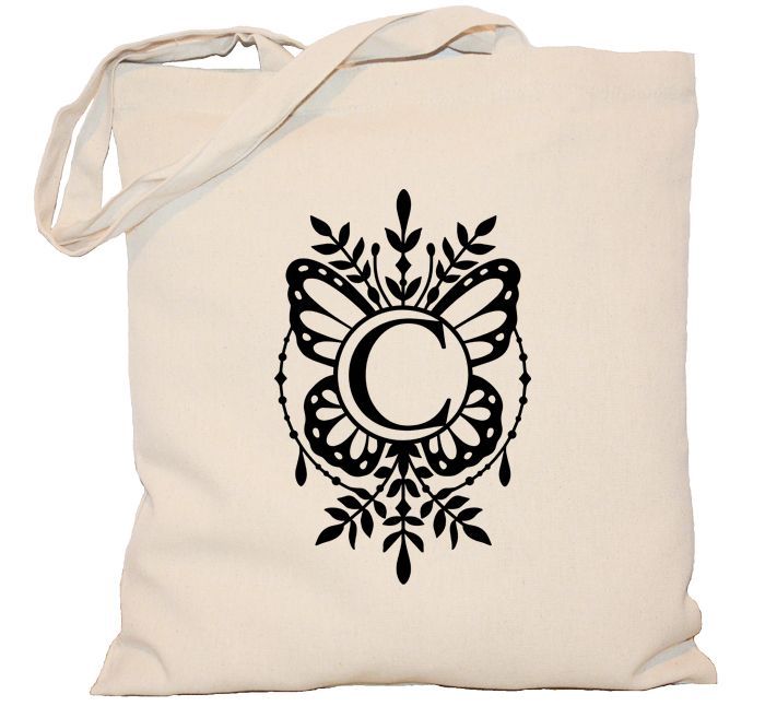 Torba z monogramem. Dostępne są wszystkie litery alfabetu. Wszystkie litery są ozdobione w podobny sposób.