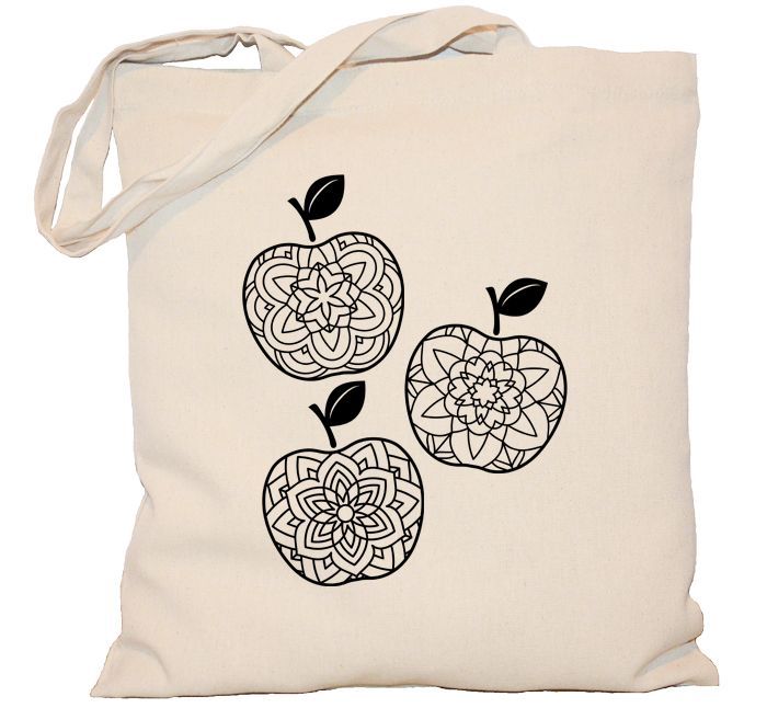 Torba jabłka mandala. Torbę można pokolorować według własnego uznania lub pozostawić tak jak jest..