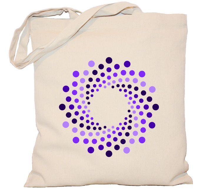 Torba z fioletową mandalą z kropeczek, takiej na pewno nigdzie indziej nie znajdziecie. Spokojny, neutralny wzór będzie pasować na prezent dla wielu osób. Nie każdy przepada za szaleństwem kolorów. Ta torba zaspokaja potrzeby spokojniejszych osób.