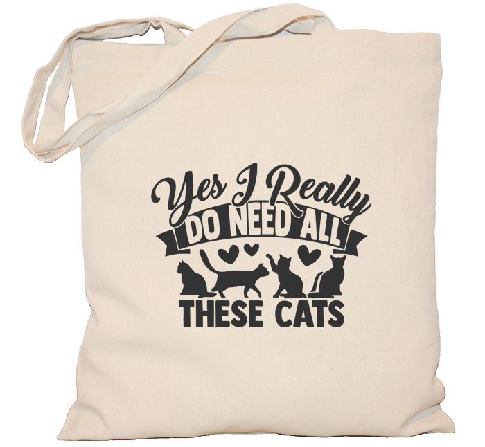 Torba z kotem Yes I Really Do Need All These Cats. Czy znasz tą zależność gramatyczną w języku angielskim kiedy stosujemy "do" w celu dobitnego podkreślenia znaczenia stojącego za nim czasownika. Tak jest w tym przypadku - "do need" potrzebuję.