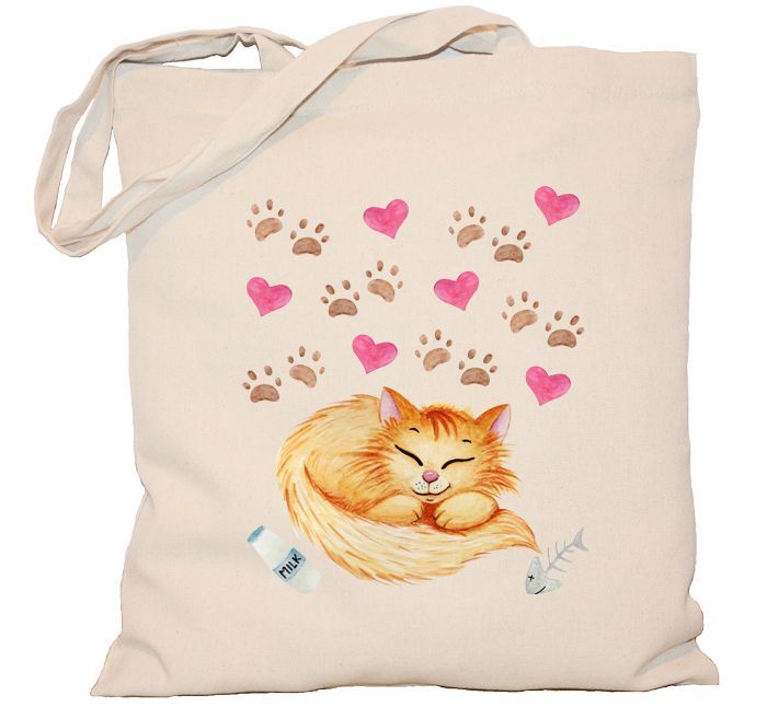 Torba z kotem i serduszkami.