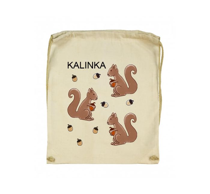 Workoplecak z nadrukiem trzech szarych wiewiórek, które trzymają w łapkach smaczne żołędzie. Dookoła nich krążą małe żołędzie. Worek przedszkolny lub szkolny oczywiście według Twojego zapotrzebowania. Zaprojektowany jest do kompletu do koszulki z wiewiórką i imieniem dziecka. Również ten workoplecak może mieć umieszczone imię lub nazwę czy logo.
