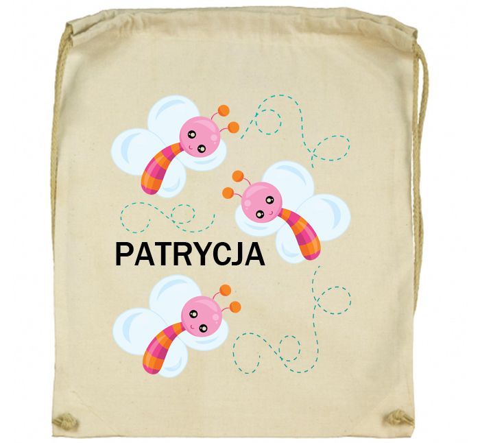 Workoplecak Motylki z imieniem idealny do wyprawki szkolnej.