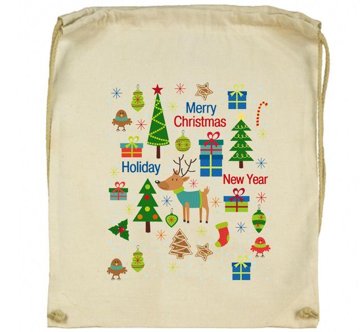 Worek świąteczny na Boże Narodzenie z kolorowym nadrukiem.